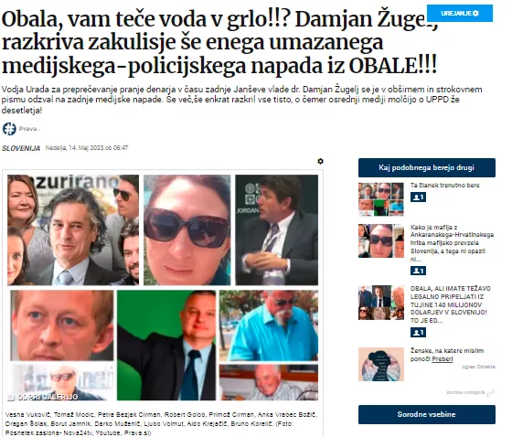 Kaj se očita Žuglju? Prosto po 3 4 HOP "osrednji resni mediji", da je Žugelj in njegova ekipa na UPPD brskala po bančnih računih Dragana Šolaka, brata srbskega politika Dragana Đilasa, škofa Andreja Sajeta, skrbniku sklada York v Sloveniji Dejanu Rajbarju, urednici N1 Slovenija Katji Šeruga in dolgoletnemu medijskemu mastermindu POP TV Branko Čakarmišu. Mediji so še razkrili, da je do ene najbolj obsežnih preiskav UPPD prišlo na podlagi anonimke.