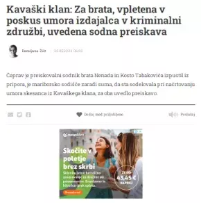 Članek "kraljice črne kronike" o bratih Tabaković. (Foto: Posnetek zaslona- Večer)