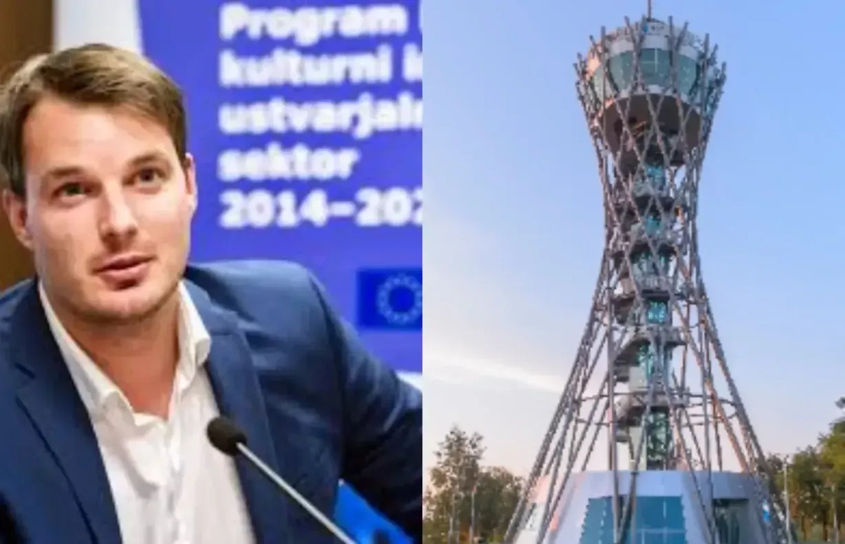 Dejan Süč in stolp Vinarium. (Foto: Posnetek zaslona- FB in Vinarium)