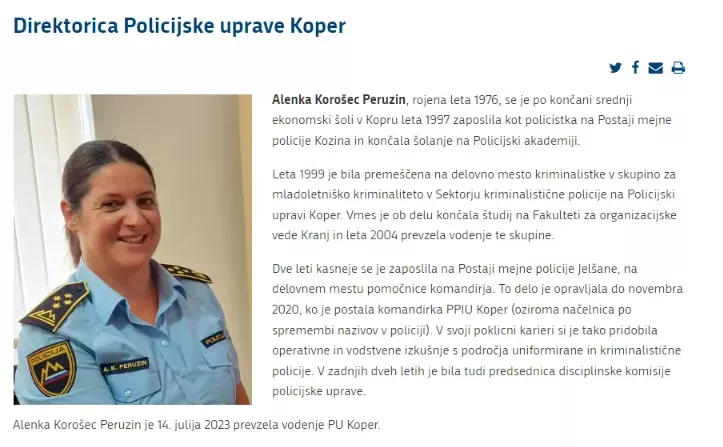 Ali bo direktorica Policijske uprave Koper Alenka Korošec Peruzin zamenjala sedanjo vodjo SK PU Koper Primoža Ogrinca? (Foto: Posnetek zaslona- Policija)