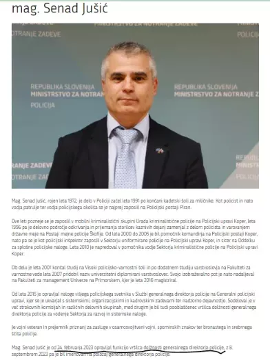 Kot kaže je tudi še en bližnji kader akterjev omrežja obalne kriminalistične klike, aktualni generalni direktor Policije Senad Jušić, z "operacijo Koper" pričel ustvarjati vodstvo po željah vplivnega omrežja sestavljenih iz nekdanjih in sedanjih obalnih kriminalističnih operativcev. Jušić je pričel svoj mandat kot v.d. generalnega direktorja Policije z dnem 24. februar 2023. Že 14. julija 2023 je za novo komandirko PU Koper postavil Alenka Korošec Peruzin.