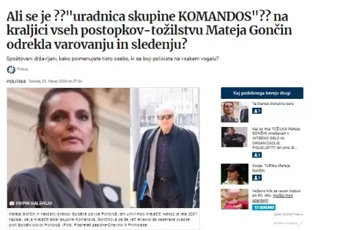 O tem smo v našem mediju že pisali v člankih z naslovi Ali se je ??"uradnica skupine KOMANDOS"?? na kraljici vseh postopkov-tožilstvu Mateja Gončin odrekla varovanju in sledenju? in Kaj se ima TOŽILKA Mateje GONČIN vmešavati v INTERNO DELO IN ORGANIZACIJE POLICIJE???! Ali smo šli čez les!!!.