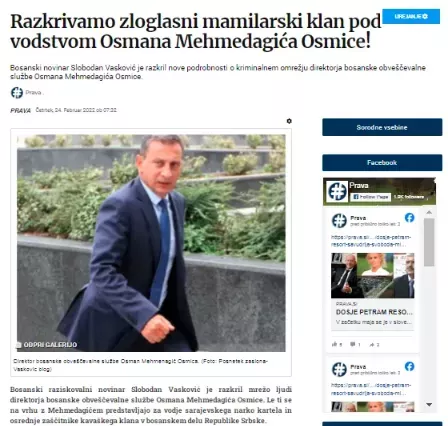 O Mehmedu Osmanagiću smo v preteklosti v našem mediju že večkrat pisali. Še najbolj ga je v svojih tekstih razkrinkal eden najboljših bosanskih raziskovalnih novinarjev Slobodan Vasković. Mi pa smo v članku z naslovom Razkrivamo zloglasni mamilarski klan pod vodstvom Osmana Mehmedagića Osmice! Objavljenega dne 24. februarja 2022 razkrili ključne ljudi iz kriminalnega obveščevalnega podzemlja, ki so predstavljali pomembne igralce na področju trgovine s prepovedano drogo, orožjem in druge kriminalne dejavnosti. To so ugotovili tudi v Združenih državah Amerike, saj se je Osmanagić znašel na črnem seznamu oseb.