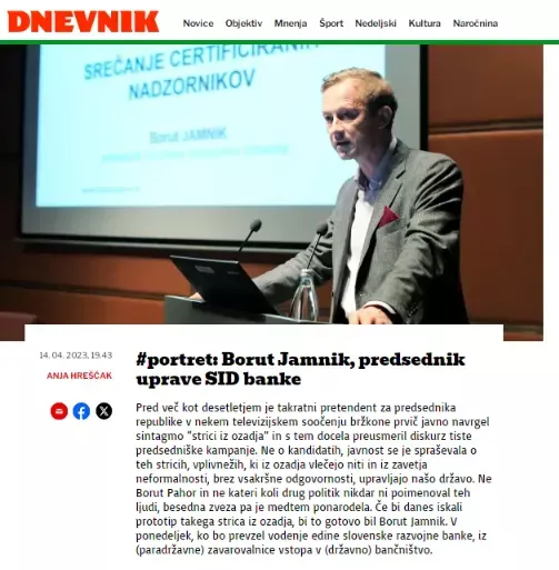 Ob tem moramo dodati, da je dr. Klemen Boštjančič na naše vprašanje kakšno je njegovo mnenje o Borutu Jamniku odgovoril, da ga ima za pozitivno osebo in dobrega strokovnjaka. Pazite, do nas so prišle tudi informacije, da sta v resnici Boštjančič in Jamnik sorodnika. A so na ministrstvu za finance zavrnili naše trditve, predsednik uprave SID banke pa še do danes ni odgovoril na našo preprosto vprašanje. Verjamemo ministru, da omenjena informacija res ne drži.