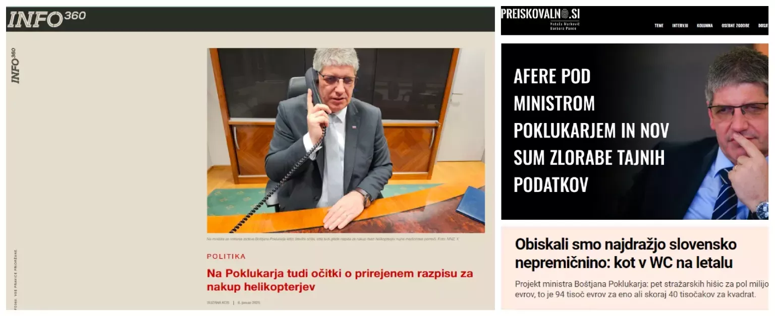 Nekaj najbolj svežih afer notranjega ministra Boštjana Poklukarja. Že zaradi teh afer bi že moral prevzeti odgovornost in odstopiti. (Foto: Posnetek zaslona- Info360.si, Preiskovalno, Finance)