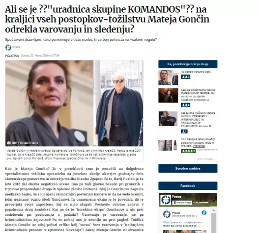 Tudi sami smo opazili nekaj lukenj v njeni zgodbi. Že v članku z naslovom Kaj se ima TOŽILKA Mateje GONČIN vmešavati v INTERNO DELO IN ORGANIZACIJE POLICIJE???! Ali smo šli čez les!!! z dne 23. marca 2024 se spraševali, kaj se ima tožilka vmešavati v interno delo policije.