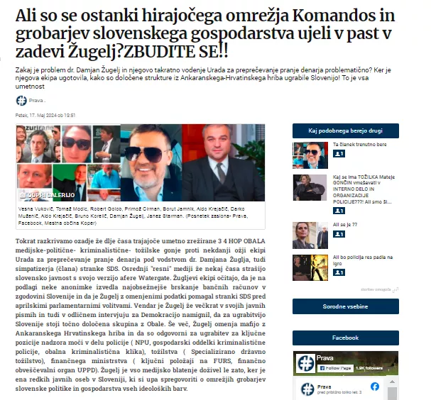 V članku z naslovom VODIČ PO AFERAH GOLOBOVE VLADE je opisanih 25 AFER SEDANJE GOLOBOVE VLADE!!!! Razkrili sta še zadnje kadrovske poteze v slovenski policiji v članku z naslovom KDO JE UGRABIL SLOVENSKO POLICIJO?. Jasno se nakazuje, da bi naj bili nekateri kadri omenjeni v članku zelo povezani z Damirjem Črnčecem. Zdaj pa Črnčec odhaja še na SDH. Kot pomočnik za korporativno varnost. Pred tem pa je še poskrbel za posel s finsko Patrio v višini 600 milijonov evrov.