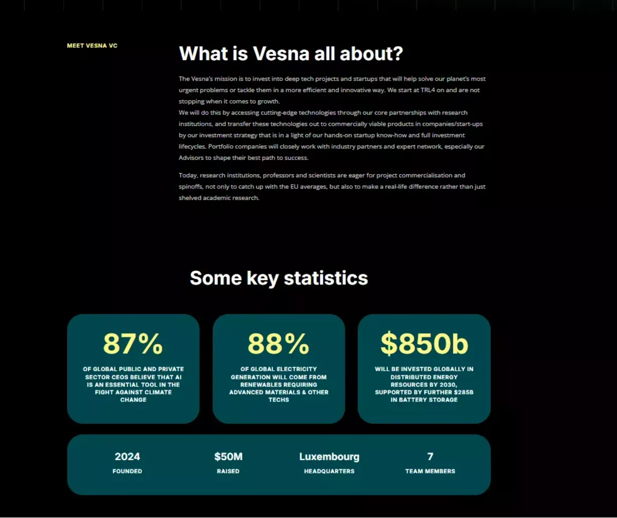 Opis sklada Vesna na njihovi spletni strani. (Foto: Posnetek zaslona- Vesna capital Ventures)