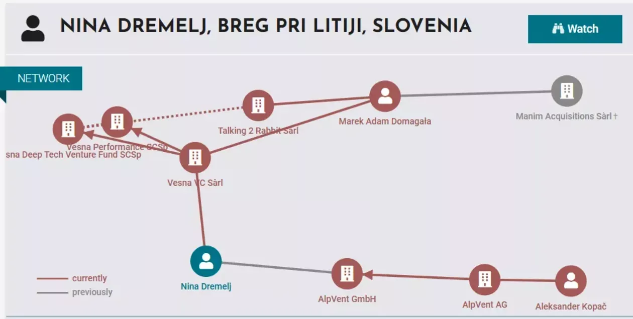 Sklad Vesna, katerega sedež je v Luksemburgu, je bil ustanovljen leta 2024. Zanimivo je, da so v ekipi sklada tudi Maja Križan, Dalibor Marjanovič, Srdja Ivekovič in Karlo Kukec, ki so prav tako povezani s preteklimi poslovnimi praksami. Kot smo opazili, je Maja Križan njena sodelavka v skladu Alita, ki ga lastniško upravljata Nina in Bojan Dremelj.