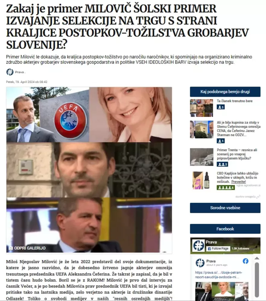 »Tokrat moramo res zbrati toliko medijskega poguma, da jasno zapišemo – Milošu Njegoslavu Miloviću se dogaja KRIVICA. Po vsej verjetnosti bo šel po nedolžnem v zapor, ker nekdo namenoma ščiti Aleksandra Čeferina! Do zdaj se je kot osrednji akter izkazal tožilec Boštjan Jeglič – disciplinski sodnik NZS (imenovan v času, ko je bil predsednik NZS Aleksander Čeferin, op. a.) in nekdanji Čeferinov soigralec! Prepričani smo, da bodo prihodnje medijske objave in javni intervjuji Miloša Milovića vsem državljanom dali misliti, zakaj v tem primeru sodni vrh dopušča, da tožilstvo izvaja selekcijo na trgu. Kdaj bo predsednik Vrhovnega sodišča Miodrag Đorđević udaril po mizi in pozval novo generalno državno tožilko Katarino Bergant, da je dovolj? Aja, sem pozabil – tudi Đorđević ima rad Obalo!