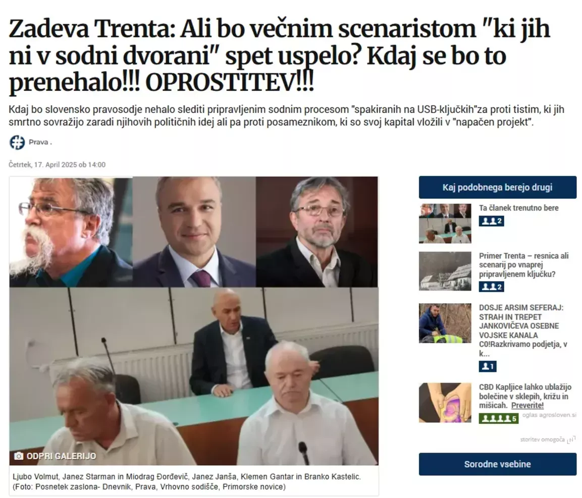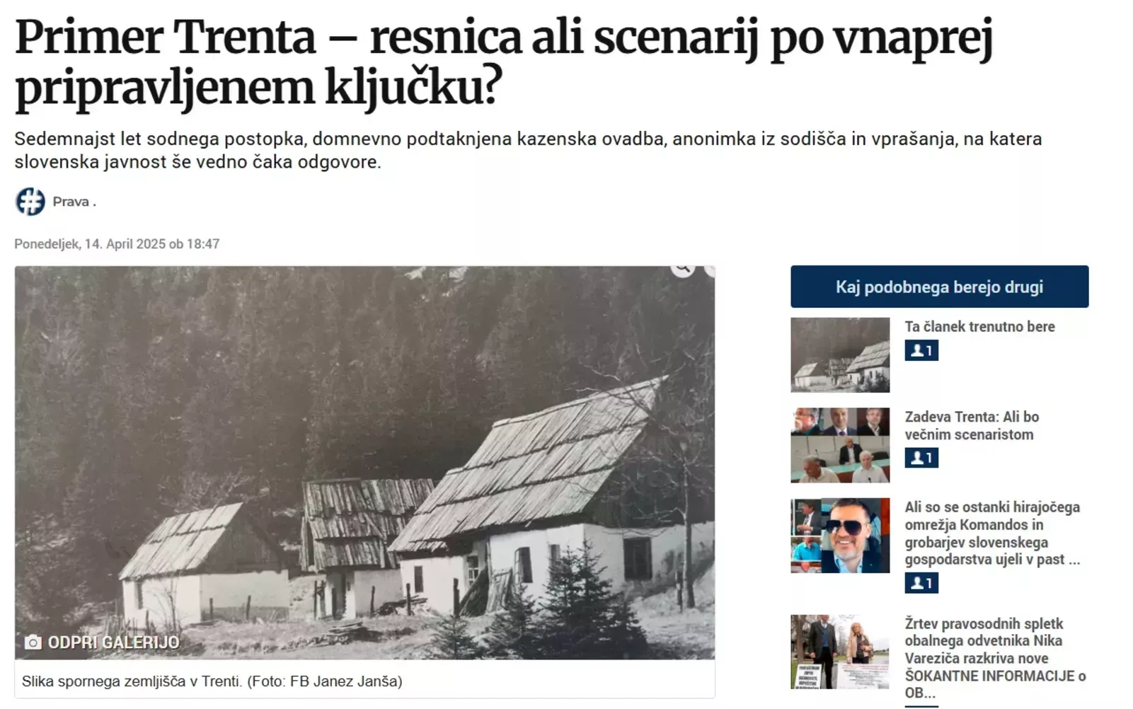A zgodba še zdaleč ni končana, saj bo dokončno besedo podalo Višje sodišče v Celju. Morda tudi Vrhovno sodišče, morda Ustavno sodišče, morda celo Evropsko sodišče za človekove pravice. Janša ima prav – zadeva Trenta še ni zaključena. Glede na dosedanja znana dejstva v procesu in v pričakovanju, da bo Višje sodišče ravnalo razumno ter ne bo sledilo morebitnim zunanjim vplivom iz Obale, pričakujemo, da bo potrdilo odločitev sodnice Posilovič.