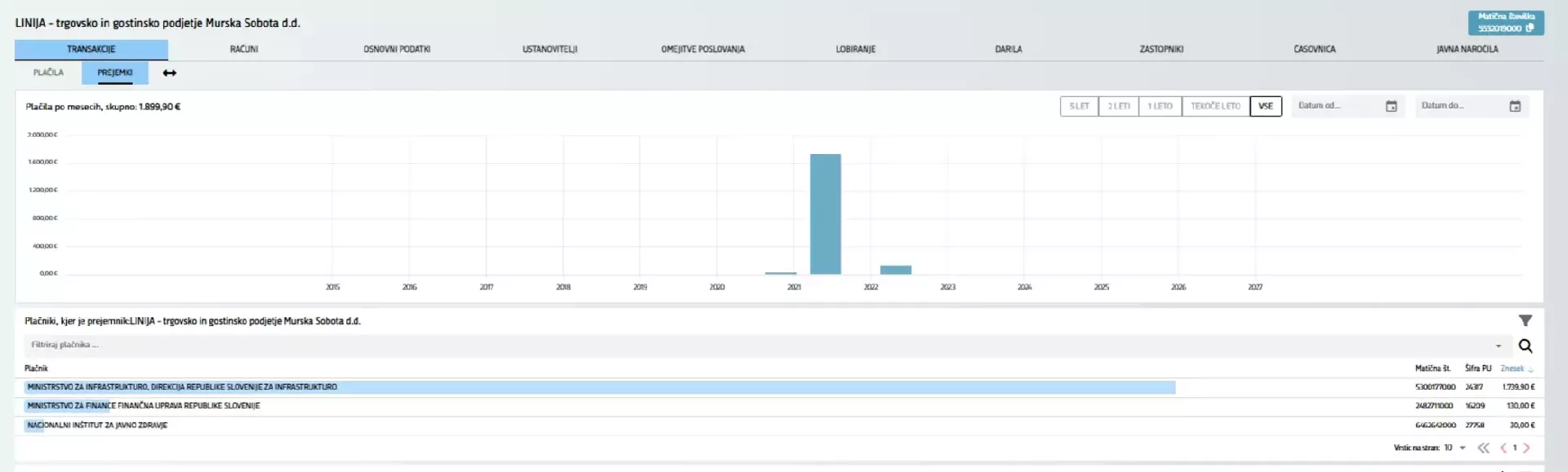Podjetje Linija je leta 2021 prejelo 1.899,90 evra iz proračuna, medtem ko je njegov podrejeni subjekt AP MS (Avtobusni promet Murska Sobota d.d.) od leta 2003 prejel kar 68.147.068,95 evra. Od tega je v zadnjih treh letih prišlo 30.450.779,63 evra, čeprav je podjetje v letu 2023 ob devetih milijonih evrov prometa izkazalo 1,3 milijona evrov izgube.