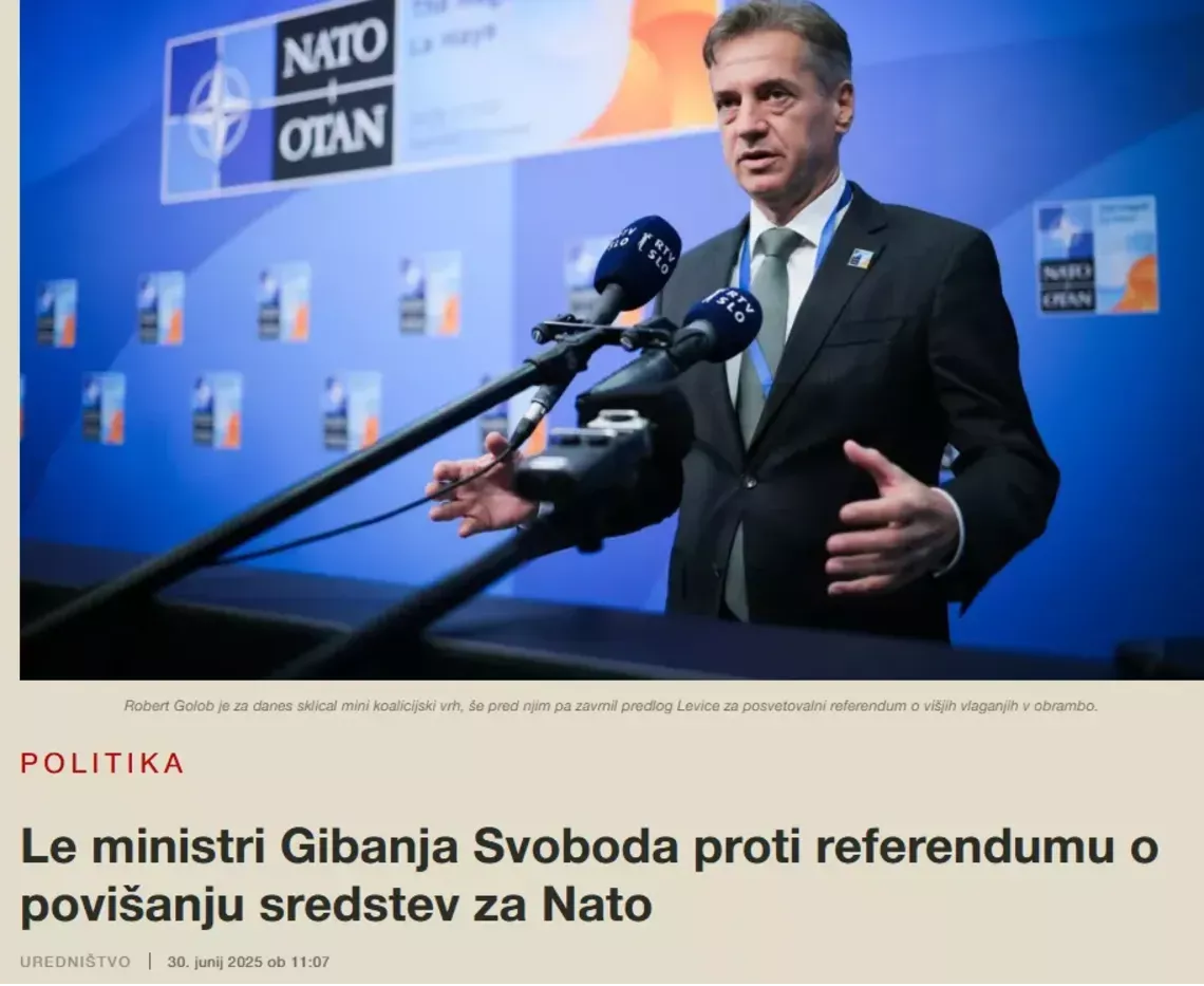 Če v Sloveniji še vedno prevladuje večinska naklonjenost Evropski uniji, pa je NATO že od prvega dne odlična tema za notranjepolitične spopade. Ni čudno, da že od vstopa poslušamo pozive, naj Slovenija izstopi iz zveze. A realnost je taka, da se je treba držati dogovorov. Tudi sam sem kot mladoleten fant nasprotoval vstopu v NATO, a dvajset let kasneje mi je jasno, da je treba mednarodne zaveze spoštovati — če želimo, da nas kdo resno jemlje.