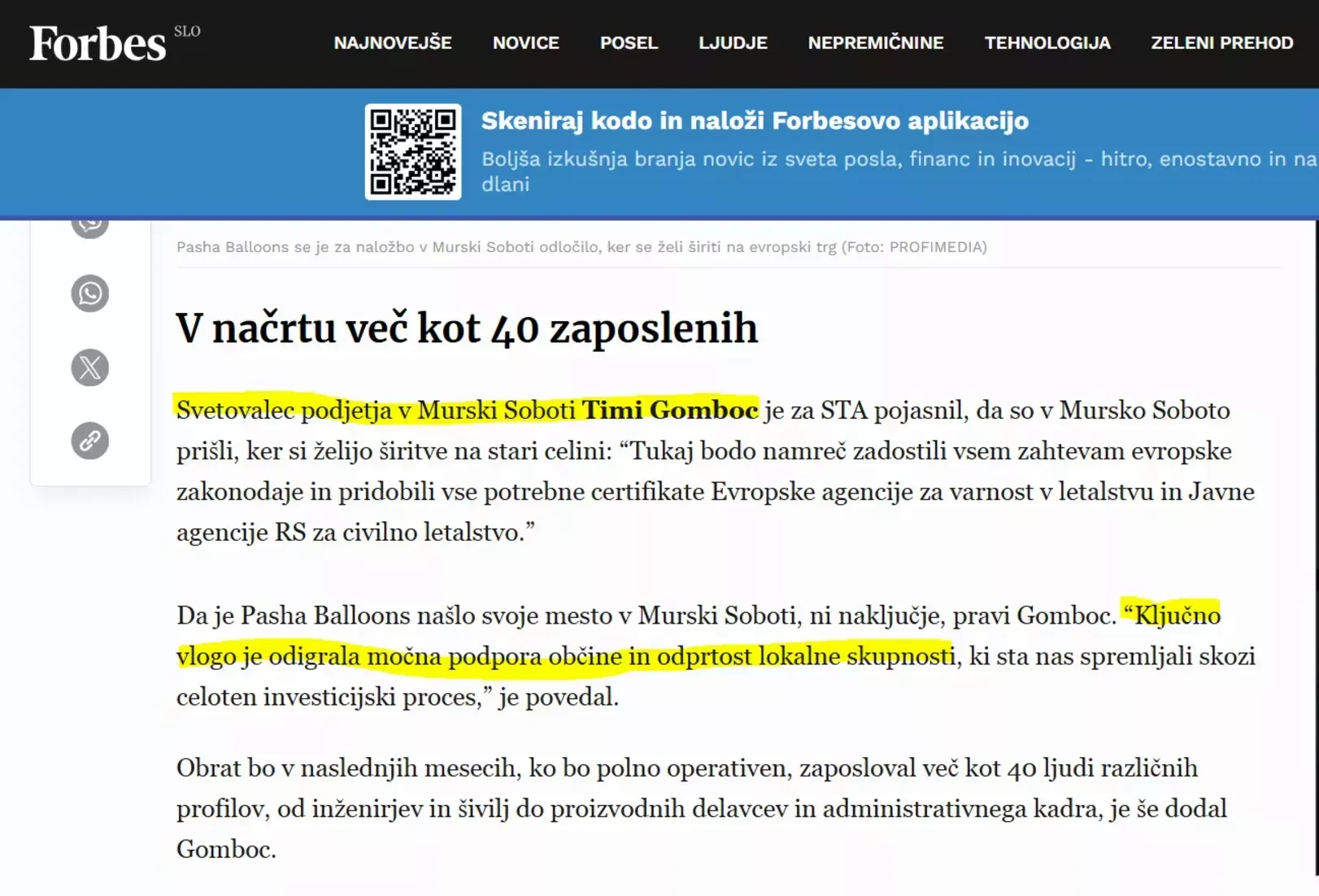 Turško podjetje Pasha Balloons d.o.o., ki načrtuje postavitev proizvodnega obrata za toplozračne balone, je prejelo občinsko subvencijo, pri čemer pa se v ozadju skriva sporno povezovanje z nepoklicnim podžupanom mestne občine, dr. Timijem Gombocom, (član oz. podpornik) stranke Socialni demokrati.