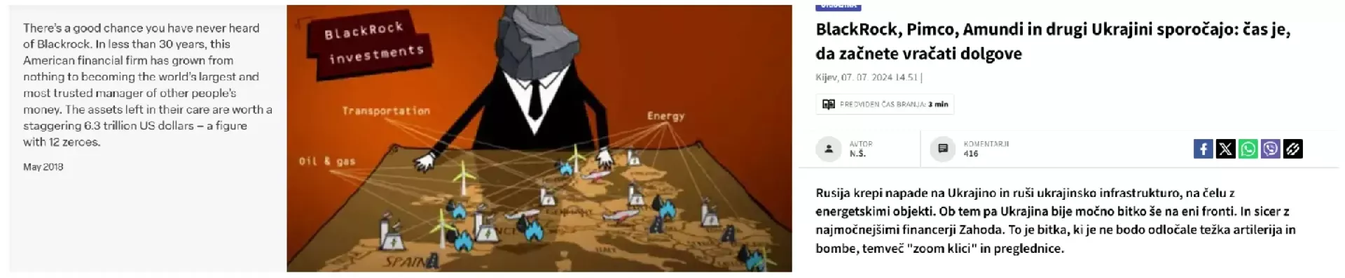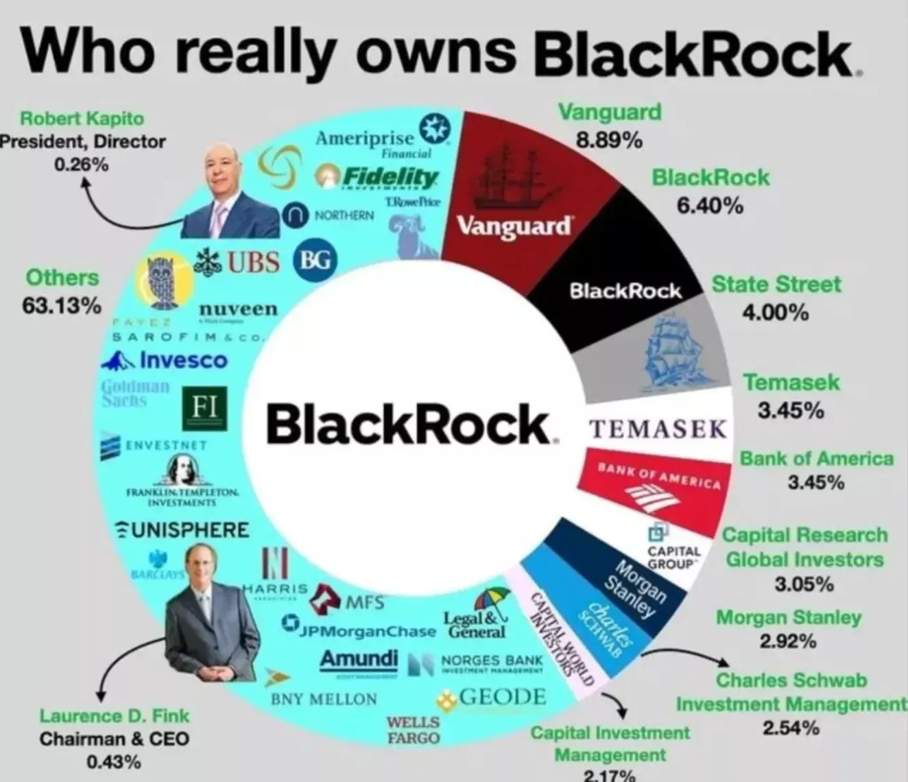 Lastništvo sklada BlackRock, ki upravlja s premoženjem v višini 6,3 BILIJONOV ameriških dolarjev. (Foto: Posnetek zaslona-Facebook)