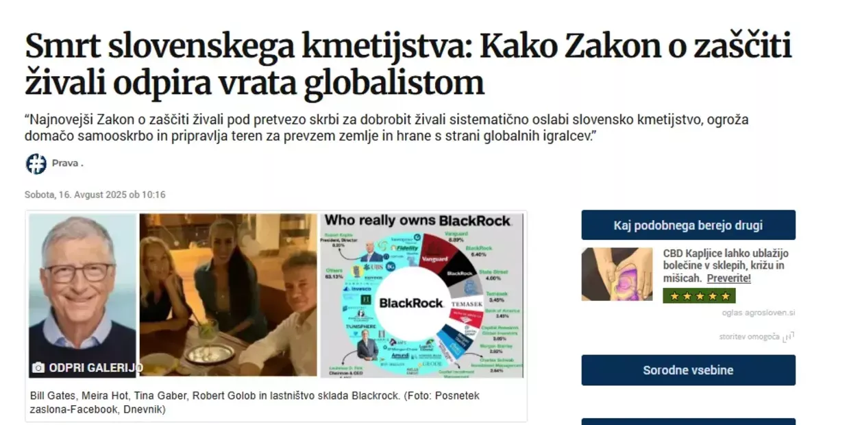 Pred tednom dni smo opozorili na nevarnosti nove zakonodaje o zaščiti živali in njene posledice za slovensko kmetijstvo Hitro se je izkazalo, da bralce močno zanima, kdo stoji za procesi, ki oblikujejo našo hrano. Če pogledamo širše, je odgovor presenetljivo jasen: peščica globalnih podjetij, finančnih velikanov in mednarodnih organizacij nadzoruje ključne segmente svetovne prehranske industrije. Njihov vpliv sega od polj, kjer rastejo pridelki, do politike, ki določa, kaj pride na naš krožnik, in celo do mednarodnih standardov, ki urejajo kakovost in varnost hrane.