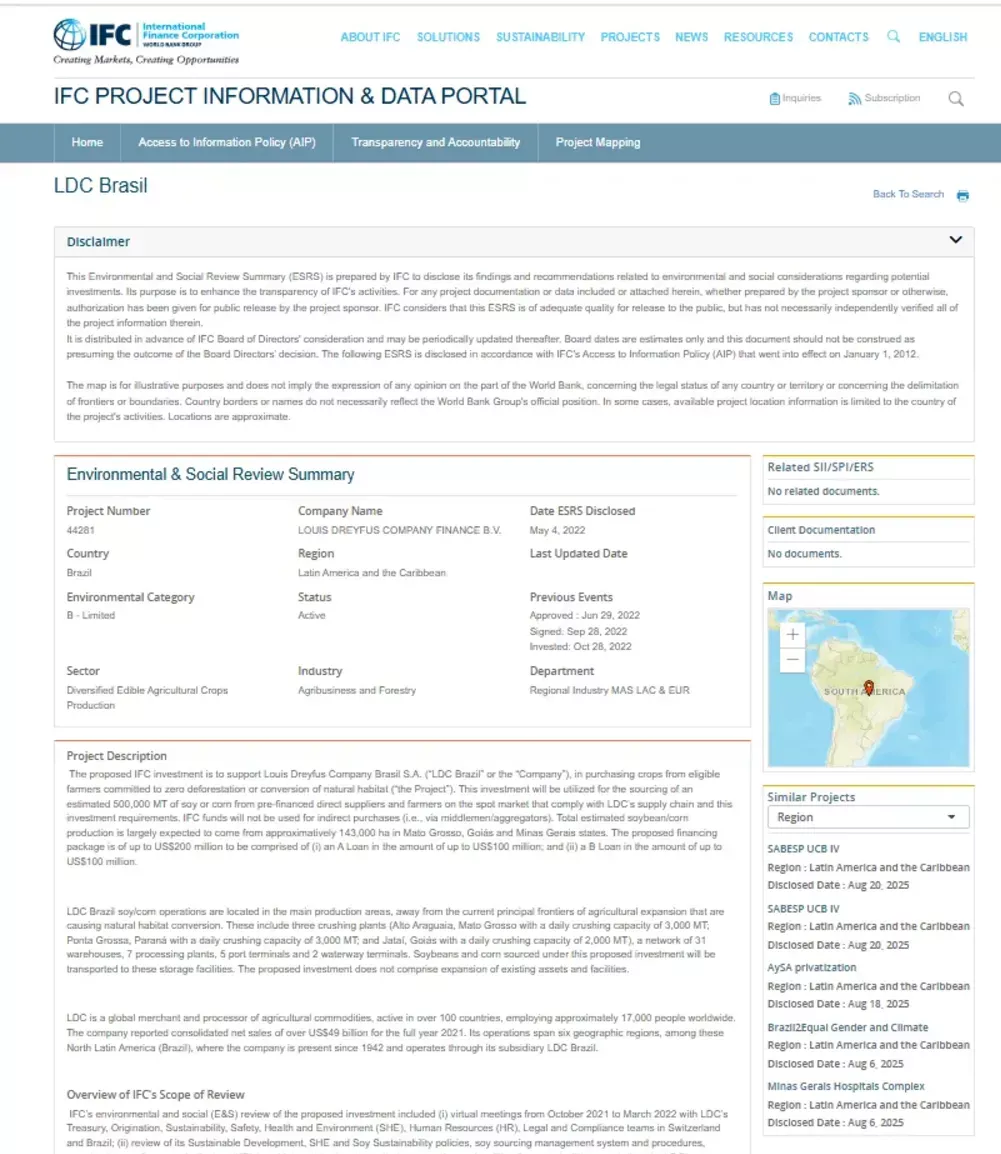 Projekt korporacije Louis Dreyfus v Braziliji podprt z delovanjem Svetovne banke. (Foto: IFC)