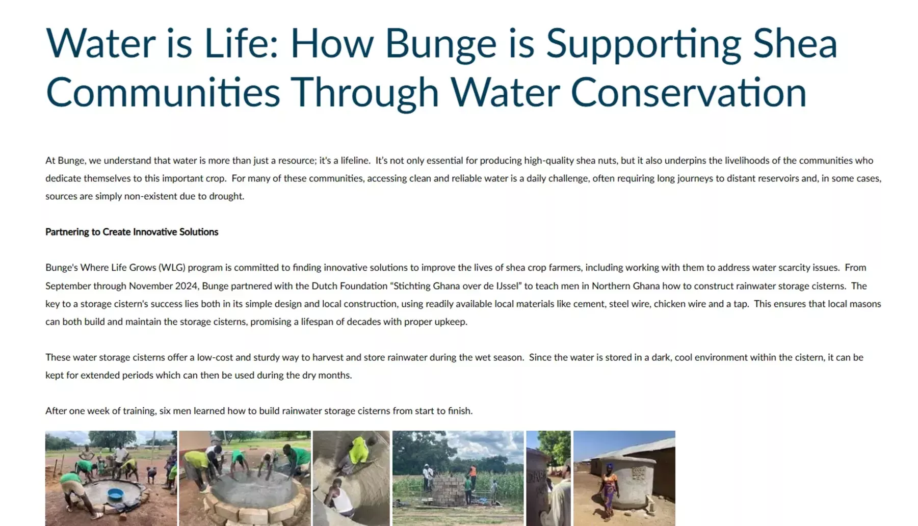 Na spletni strani korporacije Bunge lahko vidite, na kak globalistični način "podpirajo" oskrbo z vodo v eni izmed afriških držav. Gre za globalistične akcije, kjer se korporacije prikazujejo svoj "prijazni obraz." (Foto: Posnetek zaslona-Bunge)