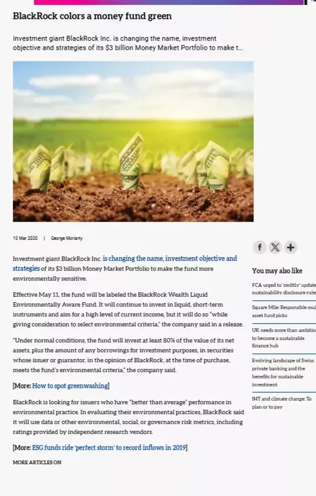 Razvpiti sklad BlackRock je že v preteklosti vložil tri milijarde v "zelene energije." (Foto: Posnetek zaslona-Future.Portfolio)