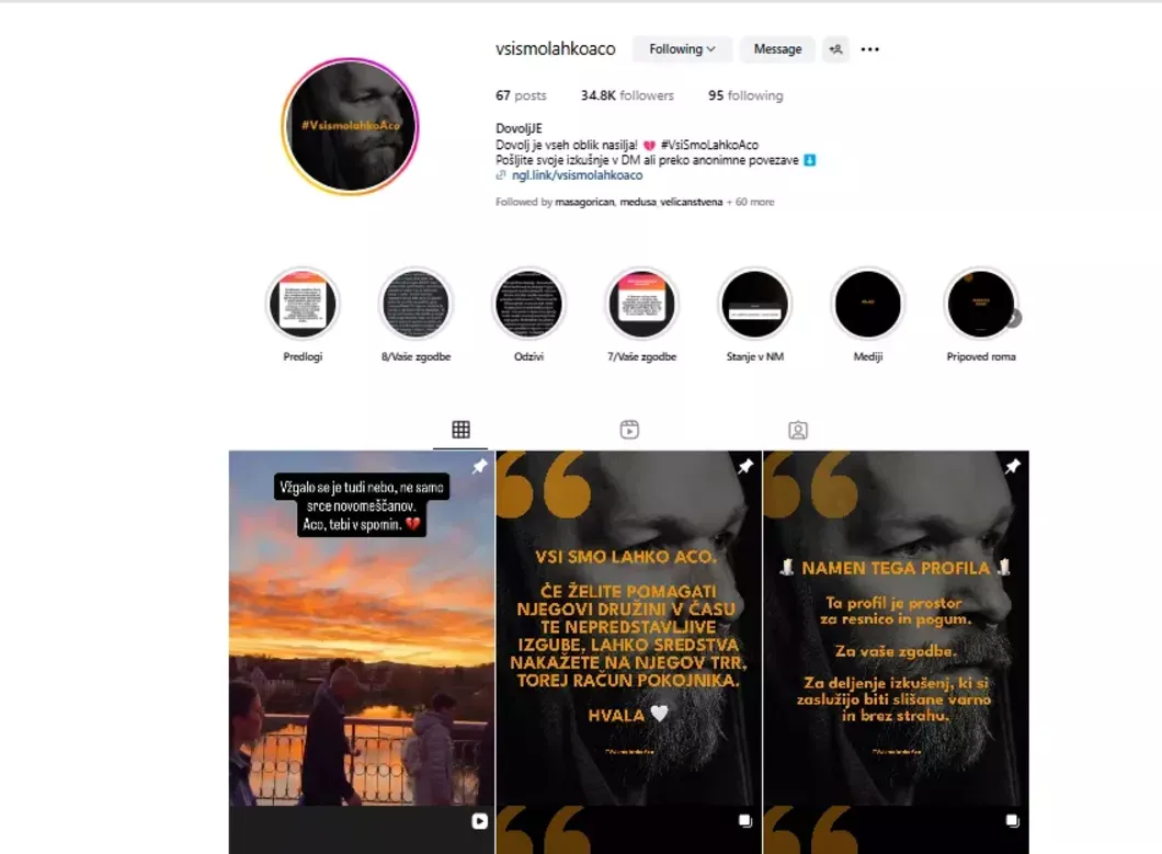 Na Instagram profilu so verjetno do sedaj objavili že več kot tristo zgodb, ki govorijo o varnostni problematiki na določenih predelih Slovenije. (Foto: Posnetek zaslona- Vsi smo lahko Aco)