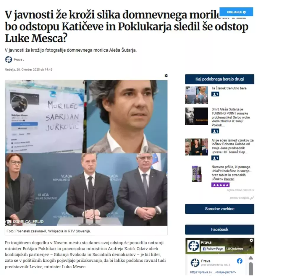 Bomo videli, kako dolgo bo vztrajal. Kot kaže, smo imeli prav tudi pri marsičem drugem, kar smo napovedali v naših člankih Smrt Aleša Šutarja je TURNING POINT romske problematike! Se bo woke vlada zbudila iz sanj? Poklukar, Mesec, Katič ODSTOP!??? in V javnosti že kroži slika domnevnega morilca! Ali bo odstopu Katičeve in Poklukarja sledil še odstop Luke Mesca? objavljenih takoj po tragediji, ki je pretresla večino državljanov naše države.