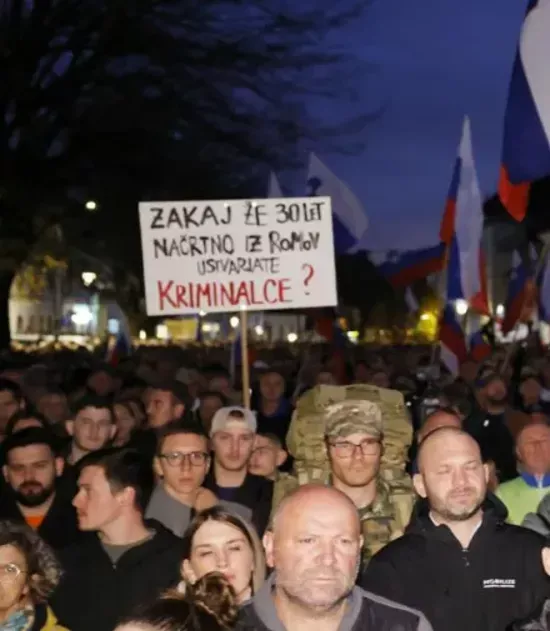 Množica protestnikov zahteva spremembe, ker se počutijo varnostno ogrožene na območjih, kjer živijo zaradi popolne odpovedi države in njenih institucij na področju varnostne, socialne in šolske politike. (Foto: Posnetek zaslona- MMC RTV Slovenija, Bobo)