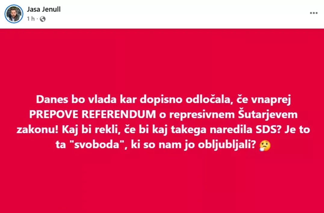 Dolgoletni prvi obraz nevladnih organizacij združenih v Glas ljudstva Jaša Jenull razkriva, da ne bo moral nihče proti novim spremembam na področju socialne, šolske, vzgojne, represivne politike vložiti zahtevo za referendum. Slovenski enajsti september je rojen. Foto: Posnetek zaslona- Jaša Jenull)