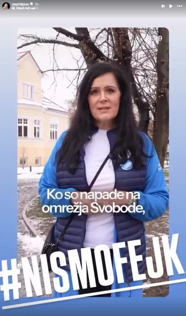 Poslanka Gibanje Svoboda Janja Sluga. (Foto: Posnetek zaslona- IG Aleksandar Repić oz @nepridiprav)